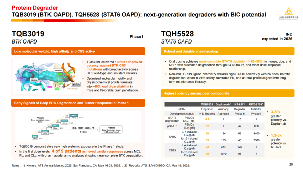 · TQH5528: Preclinical studies show that STAT6 in key tissues is almost completely degraded even at very low oral doses, positioning it as a potential next-generation oral immunotherapy.