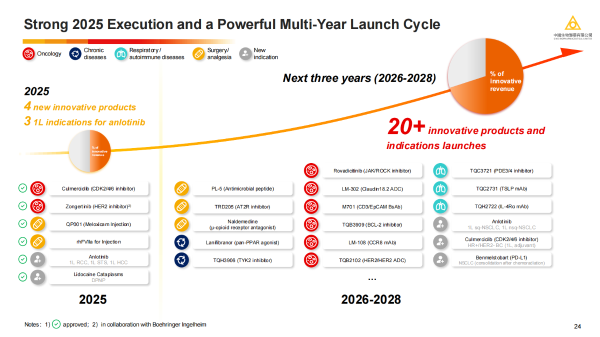 Relying on its strong pipeline portfolio and technology platforms, Sino Biopharm is entering a new stage of development driven by innovation. Between 2026 and 2028, more than 20 innovative products/new indications are expected to be approved for marketing. With the deep integration of Hygieia and LaNova Medicines, and the continuous output from internal R&D platforms, Sino Biopharm is expected to achieve a comprehensive leap in innovation quality, global layout, and long-term growth momentum, steadily moving towards its goal of becoming a leading global innovation-driven pharmaceutical company.