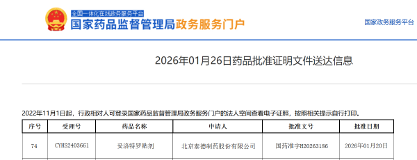 On January 26, the 0.5 mg/patch pediatric low-dose formulation of the Tulobuterol Patches (Deruituo®), the first domestic generic developed by Beijing Tide Pharmaceutical, a subsidiary of Sino Biopharm (1177.HK), officially received a drug registration certificate from the National Medical Products Administration (NMPA). Following the approval and launch of the 2 mg/patch adult formulation, this marks a further refinement of Deruituo® for precise medication in different populations, extending its use to infants as young as 6 months old. It provides a new domestic option for the standardized treatment of obstructive airway diseases caused by conditions such as bronchial asthma, acute/chronic bronchitis, and emphysema.